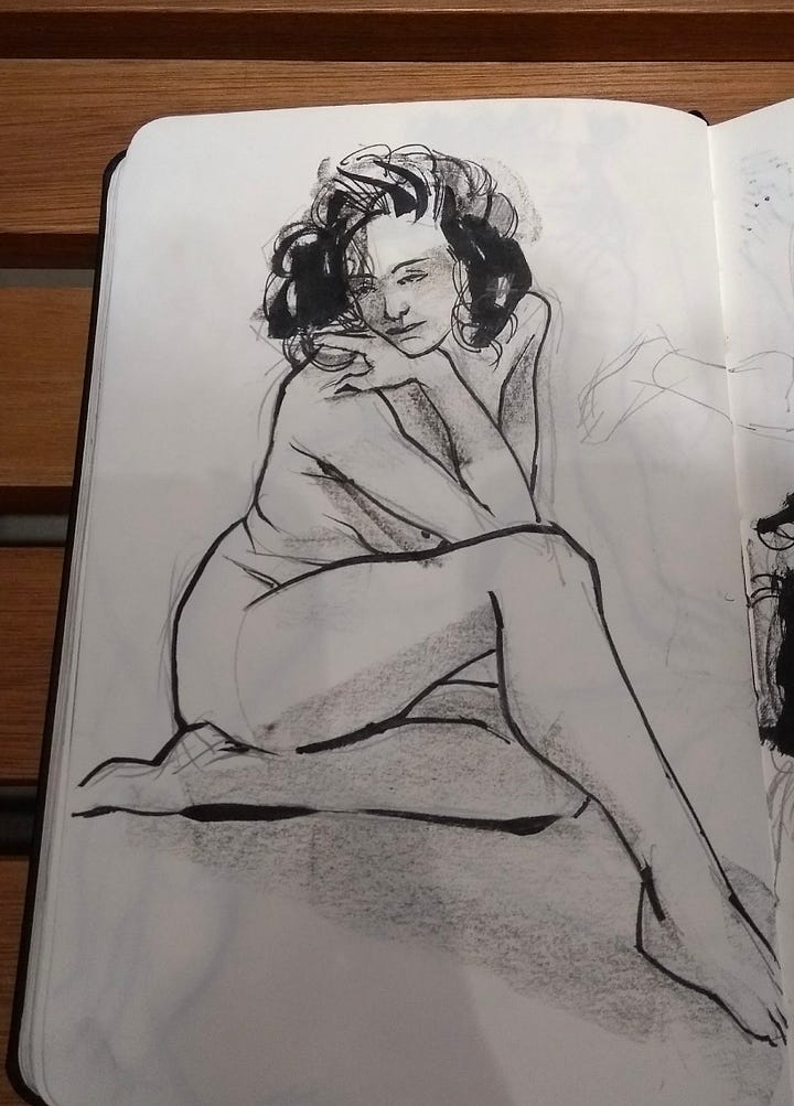 Depois desse tempo sem criar (ou sem reconhecer que ainda criava) decidi que precisava me expor com urgência, romper. O corpo de um modelo-vivo não é metáfora aqui. Para mim, à época, por mais estranho que possa parecer, não havia forma mais radical de fazer isso do que estar nua diante de desconhecidos alunos e alunas das artes plásticas.